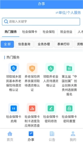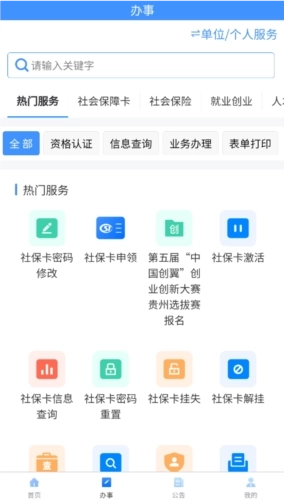 3、贵州人社公共服务平台的移动服务涵盖社会保险、就业创业、人才人事、劳动关系、社会保障卡等多项服务内容。