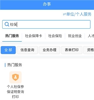 3、我们可以直接搜索社保,或者安装后在首页直接搜索,就能看到有一个个人社保参保查询功能。