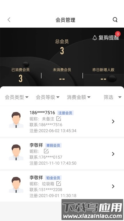 2、提供消费画像分析、活动推送与复购提醒功能;