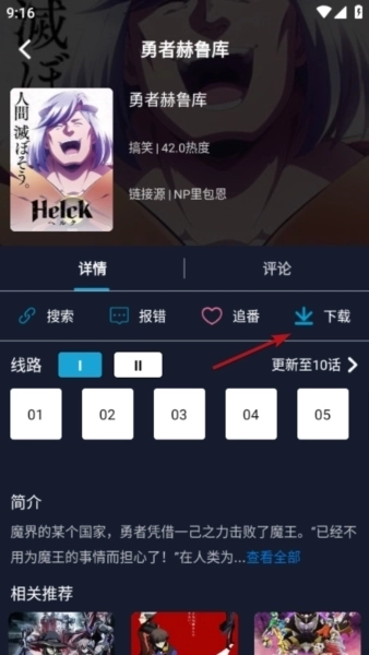 2、用户找到自己喜欢的动漫,即可点进去进行观看,系统若是出错、播放卡顿等,可以更换线路,换源播放,支持选择集数,直接点击播放即可;