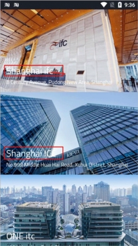 1、打开办公易应用,首页展示的内容为各个商业大厦及其对应的地址信息。