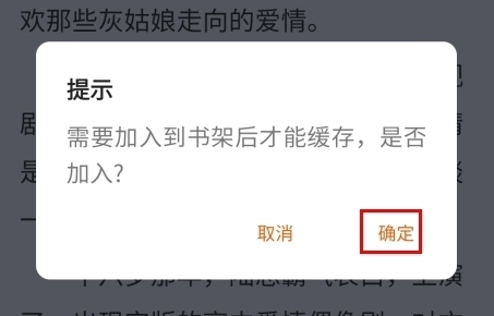 3、需要加入书架之后才可以缓存,点击确定按钮。