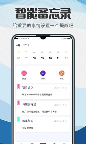 -日历记事本搭配闹钟提醒,让你不会遗漏每天记录的重要事项。