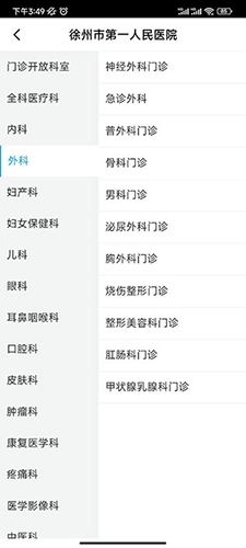3、若需预约挂号,可点开科室列表,其内容十分全面清晰;