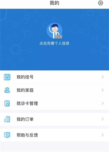 6、在“我的”页面,能够查看我的挂号记录、我的家庭信息以及我的订单等内容。