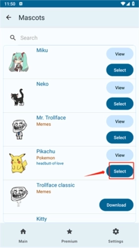 2、接着挑选一个自己喜爱的桌宠,再点击Select按钮(该按钮仅在桌宠出现后才会显示,要是没看到Select按钮,点击Download按钮后它就会显示出来了)