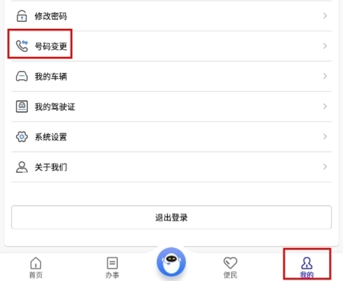 1、在我的页面中点击号码变更按钮;