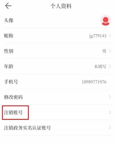 2、在个人资料页面中点击注销账号按钮;