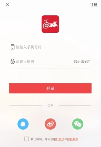 4、支持账号登录,同时也可选择QQ账号、微博账号或微信账号进行登录。