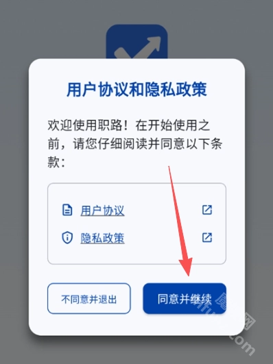 1、打开职路勾选协议,点击同意并继续