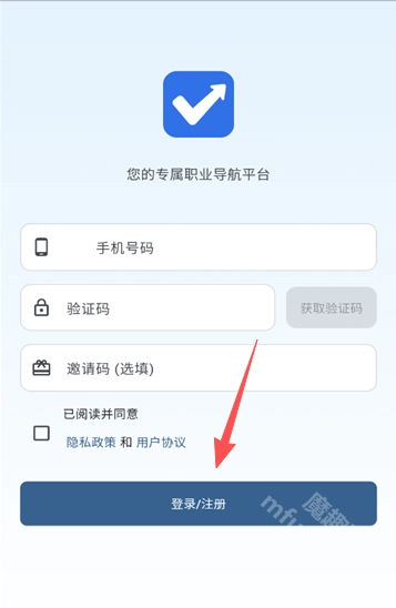 2、输入手机号和验证码完成注册或登录