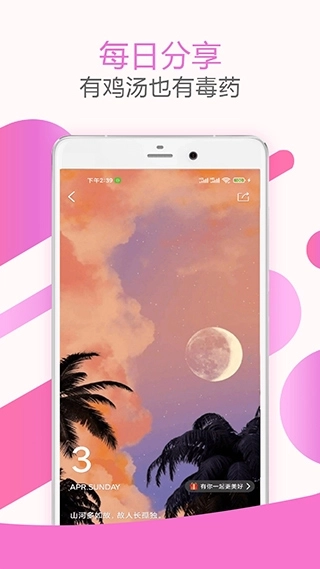 3、每日更新并推荐各类美文卡片,这些卡片配有精美的图片背景,呈现出美观的视觉效果;