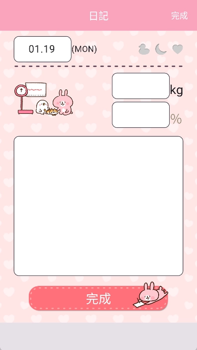 2、日本当下很受欢迎的可爱插图,体重有变化时就会触发不一样的插画,能帮助减轻焦虑情绪。