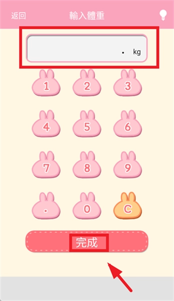 2、在弹出的界面里填写当前的体重数据,接着点击“完成”按钮确认。