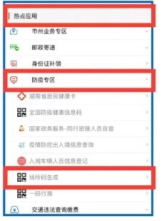 2、登录之后就可以在首页找到防疫专区,在这里找到场所码生成。