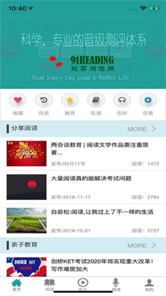 全面阅读支持:整合找书、读书、听书、看书、朗读、测试、评估等功能,为英文阅读旅程提供全方位助力。
