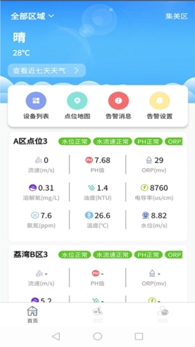 监测指标包括:温度、PH值、溶解氧、氨氮、浊度、电导率以及氧化还原电位。