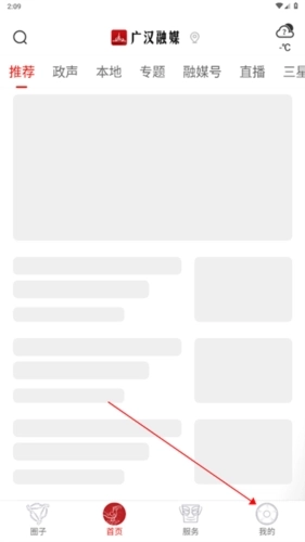 1、打开进入广汉融媒,在首页下方内点击【我的】;