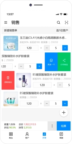 8、微信小程序与相互通联,上架商品与小程序云店同步;通过微信分享商品、客户、单据,可借助数亿微信流量为小程序云店引流;