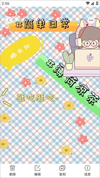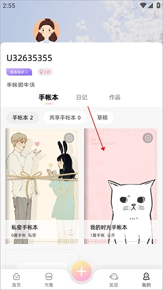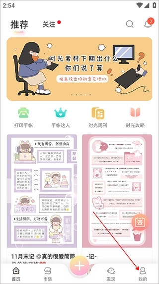 1、若用户希望去除手账模板上的水印,需先进入个人页面,找到并打开自己记录的手账,然后进入编辑模式。