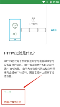 2、可以先了解HTTPS过滤,后选择“下一步”;