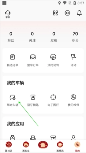 1、首先用户需依照上述车辆绑定方法完成车辆绑定操作,同时开启手机定位功能