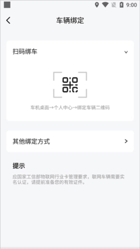 2、进入车辆绑定页面后,扫描车辆中控大屏上的二维码就能完成车辆绑定操作。