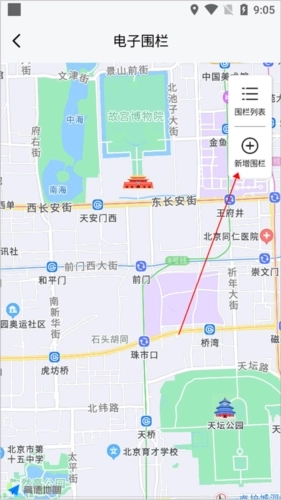 3、然后在打开的地图页面中点击【新增围栏】