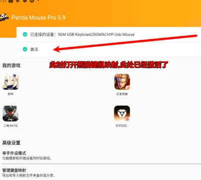 5、完成激活操作后,添加所需游戏,对键位映射进行配置,连接好外设就能使用;若设备重启,只需再次激活,便可快速恢复之前的设置。
