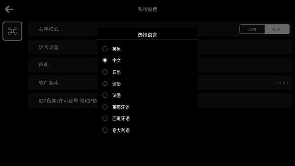 在语言选择界面勾选“中文”选项,之后返回主界面,就能完成设置了。