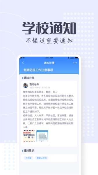*提供丰富的校园服务和学习支持,方便家长、老师和学生随时获取通知公告、成绩学情等重要信息。