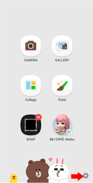 1、并打开小熊相机,点击右下角的齿轮符号。