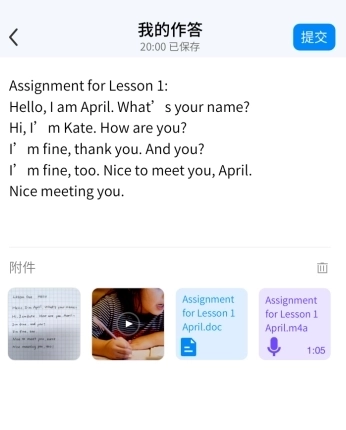 学生可以在线提交作业