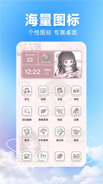 1、图标:涵盖可爱风、简洁风等多种风格,让你轻松美化图标;