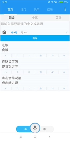 4、支持直接在线录制,可查询当前话语对应的粤语翻译,便于练习粤语口语。