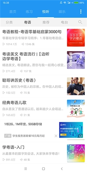 丰富的有声资源,可以听粤语小说、粤语评书、粤语歌曲等精彩内容。