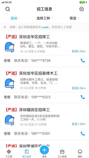工工网是专注服务工程行业的灵活用工平台,核心目标是为企业和工人搭建高效对接的桥梁。平台借助智能算法实现用工需求的精准匹配:工人能随时浏览附近岗位信息,企业可快速发布招工需求;系统还会依据技能差异自动推荐适配岗位,显著提升招聘效率。平台所有信息均经过严格审核,保证真实可靠,且操作简单便捷,让找活招工更轻松,欢迎使用。