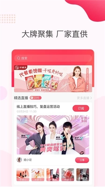 以护肤、彩妆、洗护为主营品类,涵盖女性内衣、家居生活、食品保健等泛美妆品类,优中选优,件件精品。