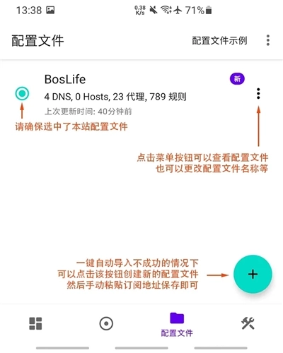 2、进入配置文件界面,一键自动导入成功的情况可以直接看到已经有了配置文件,默认配置名称可能与图示不同,您可以通过点击配置文件右方菜单查看详情及更改配置文件名称等。