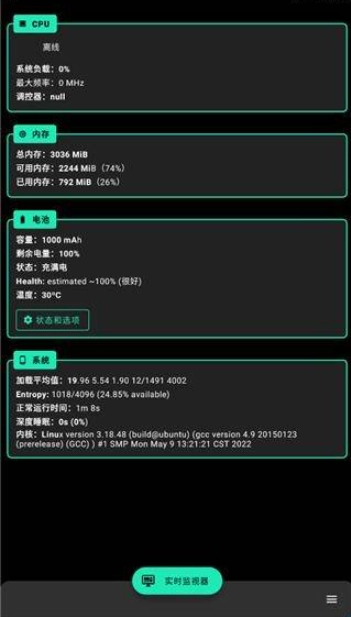 实时性能监控仪表盘:可实时呈现CPU/GPU频率、温度、内存占用、电池状态、内核日志等系统核心参数。