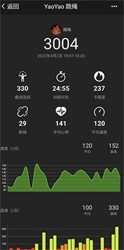 1.能够记录自己的跳绳数量、时长等相关数据。