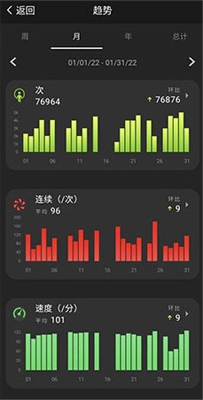 3、用图表形式统计运动数据助力直观查看分析结果