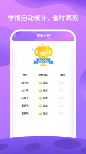 3、一目了然的学情统计信息,自动统计实时学情的情况,省时省力;