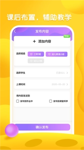 支持用户在线为学生布置课后作业,并将其作业一键发布给学生