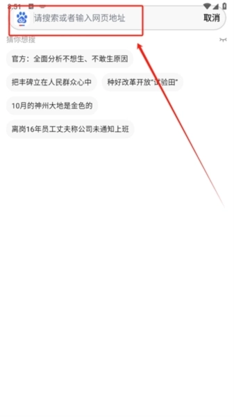 3、点击上方搜索框,输入关键词内容或者网址就能快速获取结果