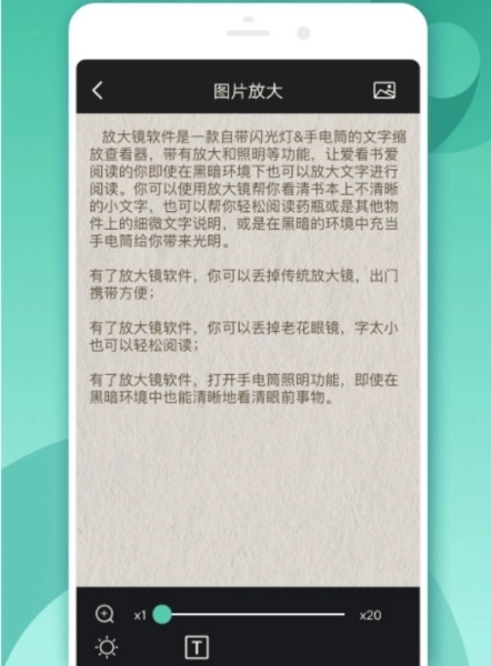 为用户提供了放大镜的功能,可以在线智能放大文字来进行阅读。