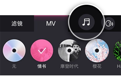 1.拍摄界面选择MV特效后,点击音乐图标;