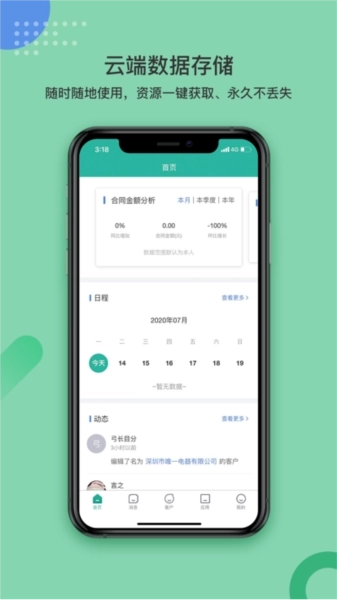 这款软件是一个整合了建立团队统一知识网盘、未读消息管理、数据准确性保障、工作日志记录、通知推送功能等的综合平台。它还支持自定义分析、商机管理、精准检索、公告通知、合同回款、销售过程分析、销售结果分析以及客户管理等多项功能,帮助企业提高管理效率。