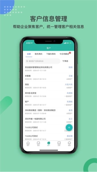 3、客户信息管理,用户可以统一负责自己的客户,为客户实时解决各种需求;