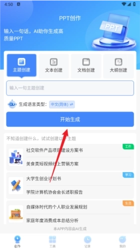 1、一键生成:只需输入主题内容,一键生成高质量的PPT。